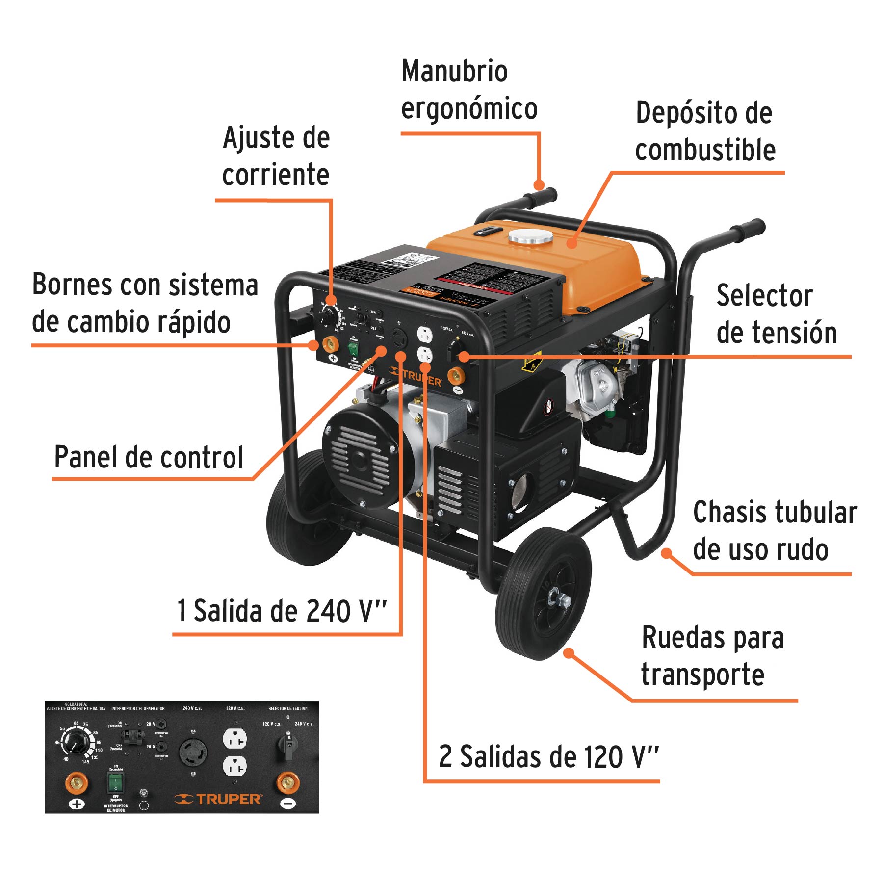 Especificación: Soldadora a gasolina 145 A con generador, Truper