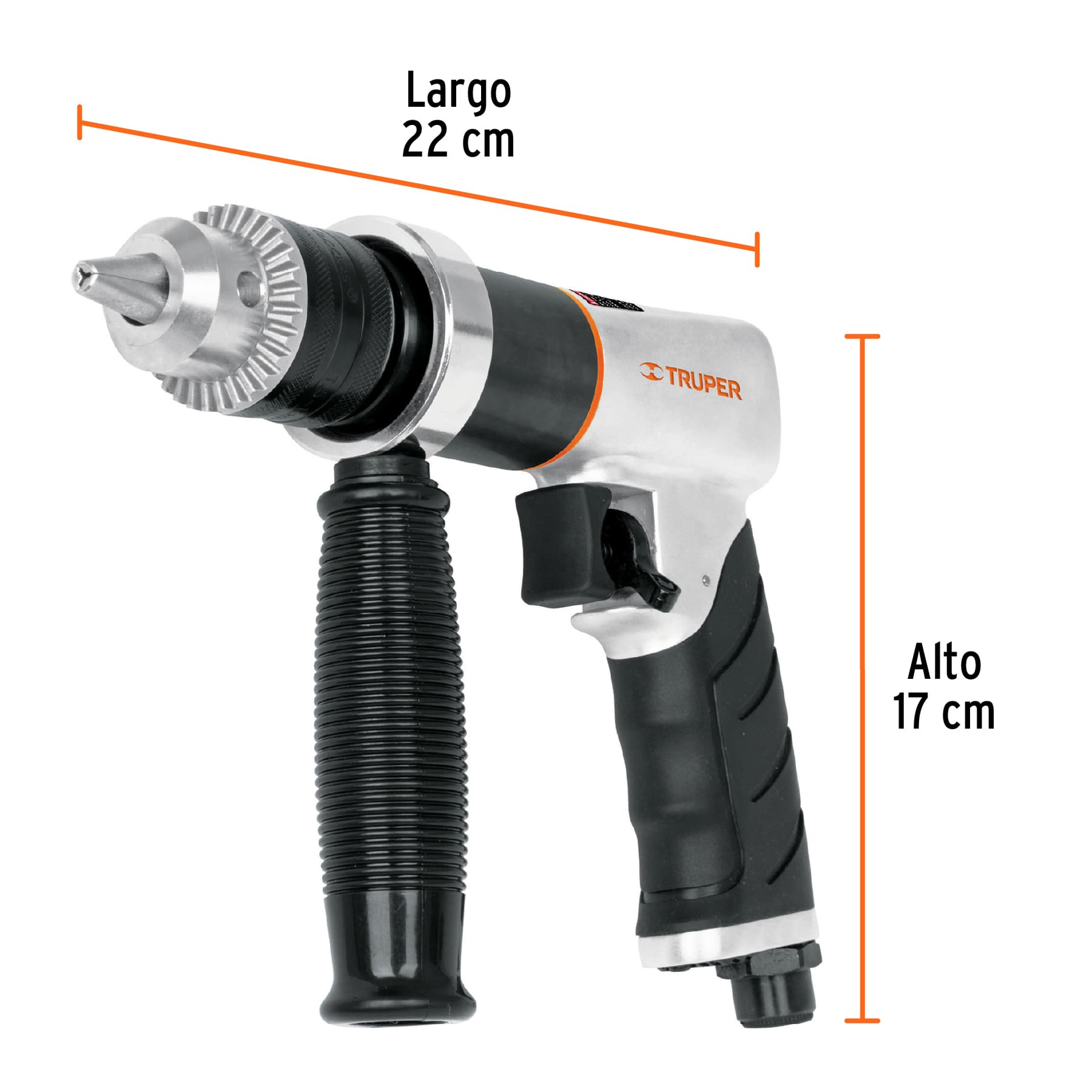 Este taladro neumático reversible 1/2″ Truper proporciona un rendimiento excelente en perforaciones y tareas de atornillado. Su diseño duradero y fácil manejo lo hacen perfecto para trabajos exigentes en talleres y entornos industriales.