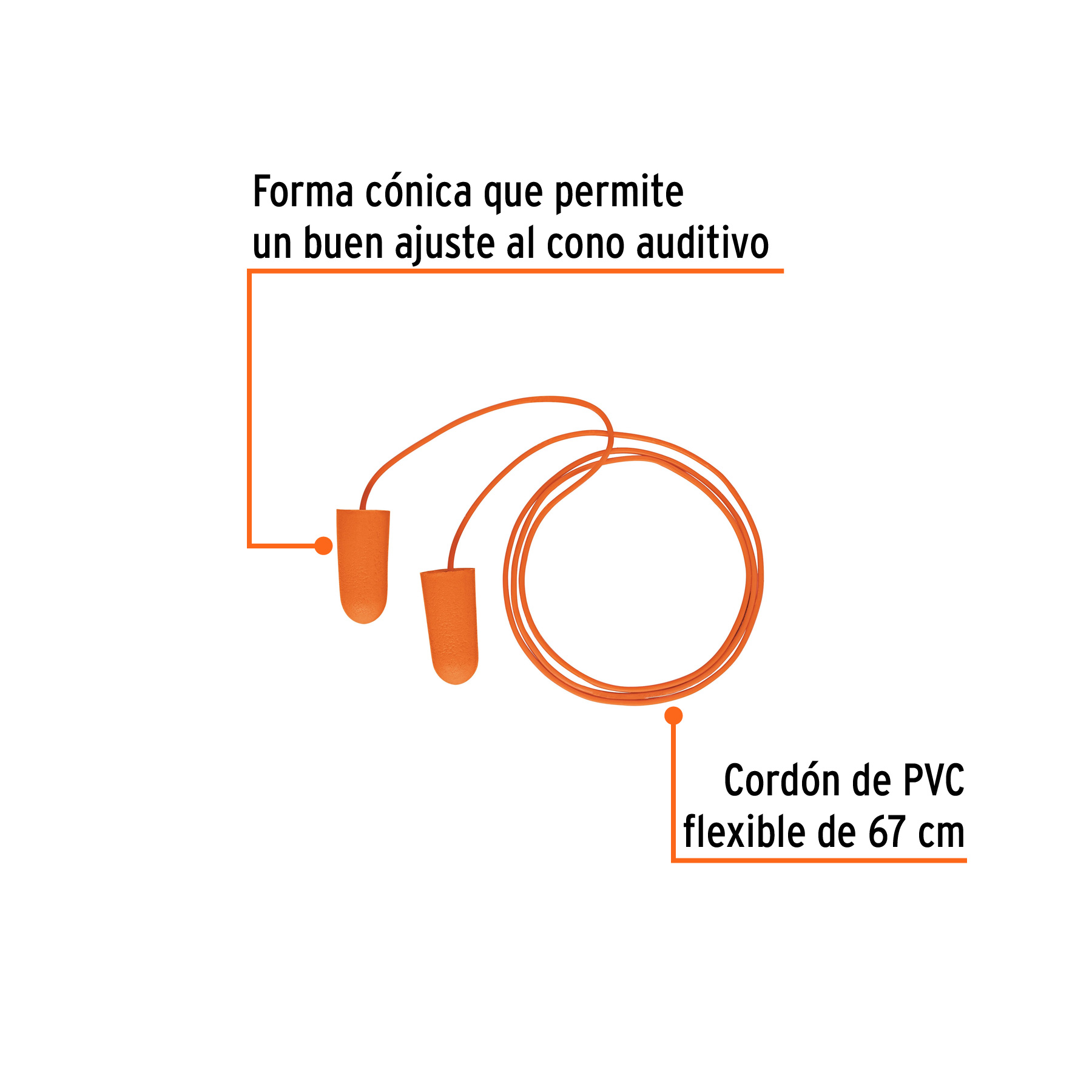 El tapón auditivo desechable de espuma con cordón de Truper está diseñado para ofrecer protección eficaz contra ruidos molestos y peligrosos en ambientes industriales, de construcción o trabajos con maquinaria ruidosa. Fabricado en espuma suave, se adapta cómodamente al canal auditivo, brindando un ajuste seguro y cómodo durante su uso prolongado.