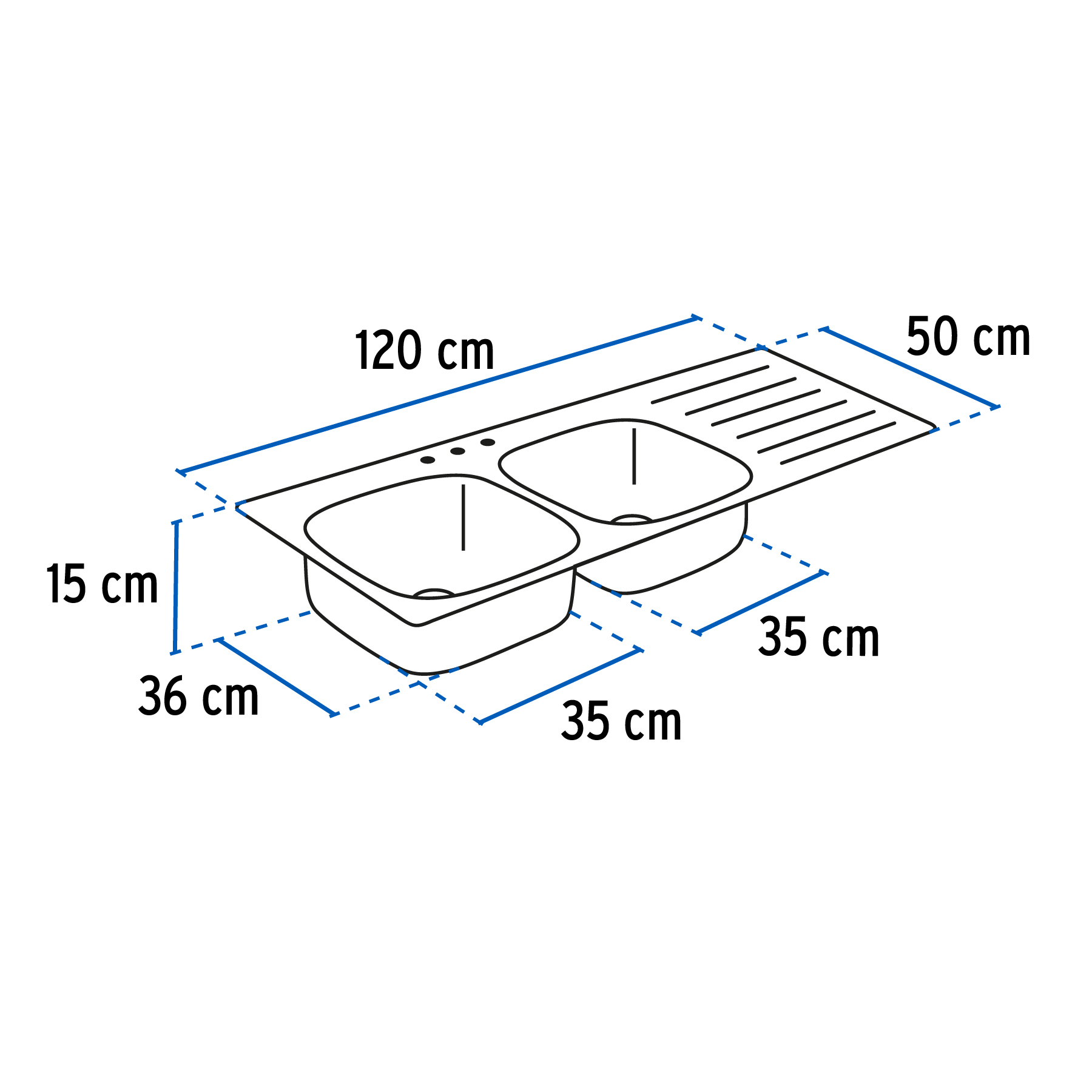 Especificación: Tarja de empotrar doble tina derecha 120 x 50 cm, Basic
